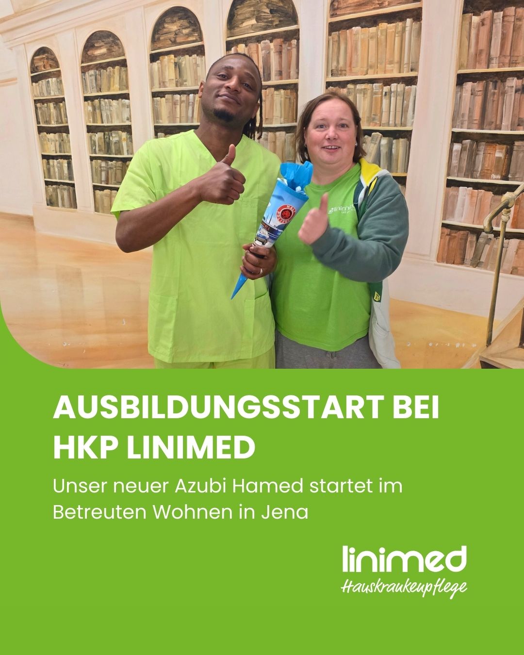 Zum 1. März 2026 durften wir bei HKP Linimed einen neuen Auszubildenden begrüßen: Hamed startet seine Ausbildung zum Pflegefachmann im Bereich Betreutes Wohnen (BeWo) in Jena.
